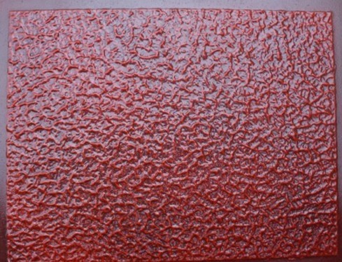 施工工艺:把弹性拉毛漆用灰刀均匀抹到墙上,然后用拉毛滚筒滚即可拉出不同的效果,根据料的厚薄和所用拉毛滚桶的纹理大小可做出大小不同的花纹。干燥后即可上金属漆或乳胶漆,用透明防尘面漆罩光后效果更好。
